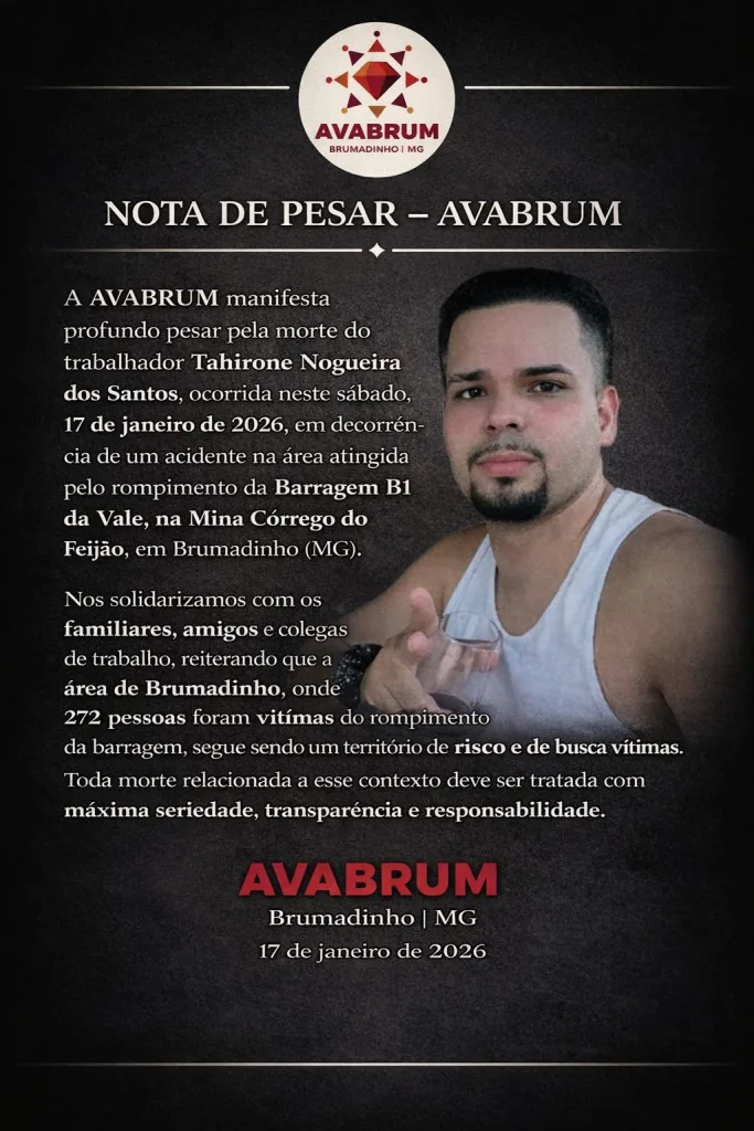 A Avabrum manifestou pesar pela morte do trabalhador: