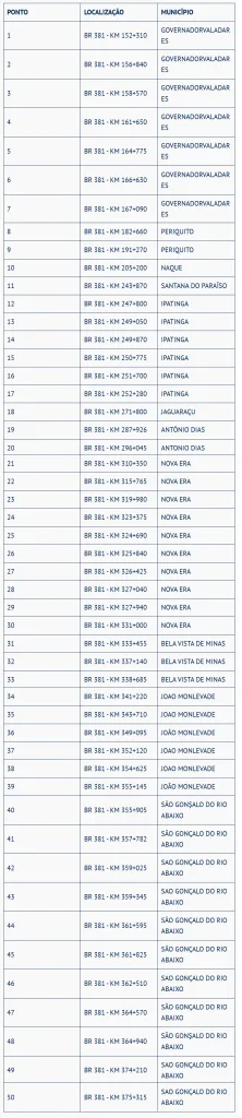 Motoristas que trafegam pela BR-381, no trecho entre Caeté e Governador Valadares, devem ficar atentos: os novos equipamentos de fiscalização eletrônica de velocidade instalados ao longo da rodovia estão na fase final de homologação e aferição.